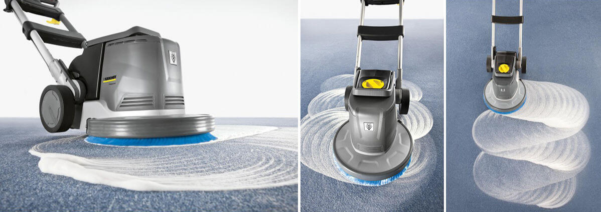 Цей спосіб передбачає наявність миючого пилосмока, однодискової роторної машини для чищення підлог, а також миючого засобу, що відповідає типу матеріалу килимового покриття.