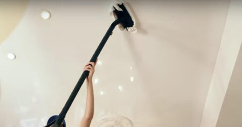 Найбільше запитань виникає, як прибрати пил зі стелі. З цим завданням найкраще справляється сухий метод. Щітка на довгій ручці дозволить протерти навіть важкодоступні місця, видаливши з них пил і павутину. М’який ворс ефективно збирає бруд, не ушкоджуючи поверхню.